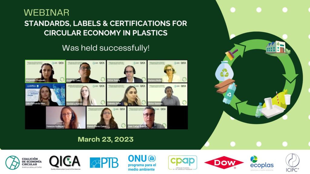 The Quality Infrastructure Council of the Americas (QICA) and the Circular Economy Coalition for Latin America and the Caribbean organized a webinar titled “Standards, Labels & Certifications for the Circular Economy of plastics”